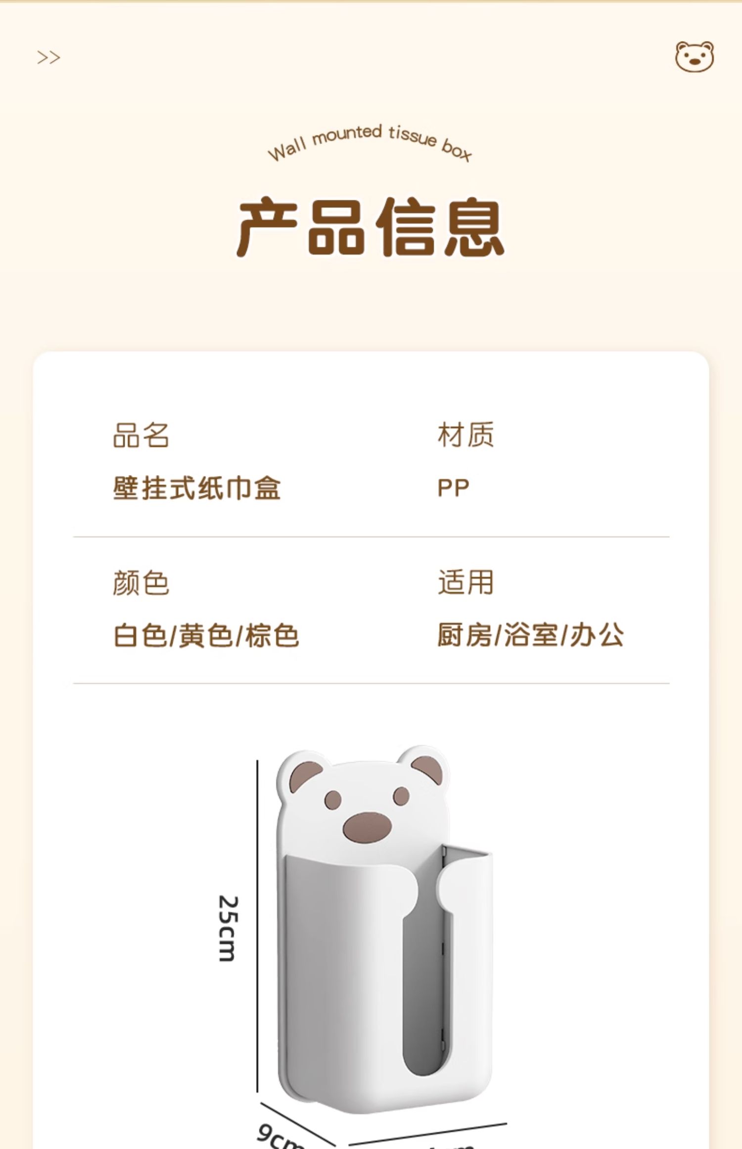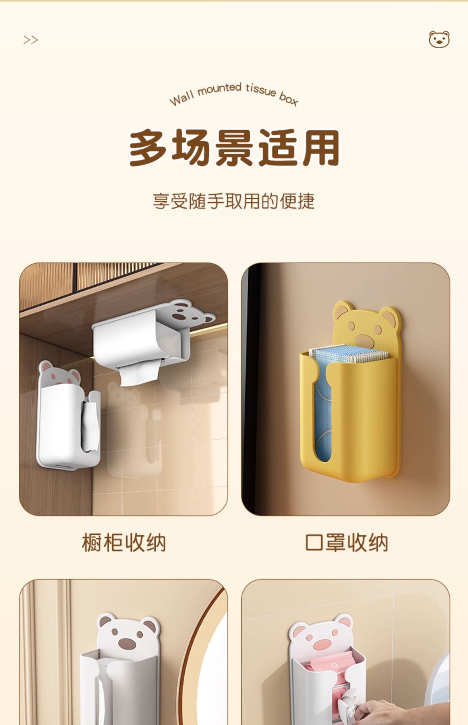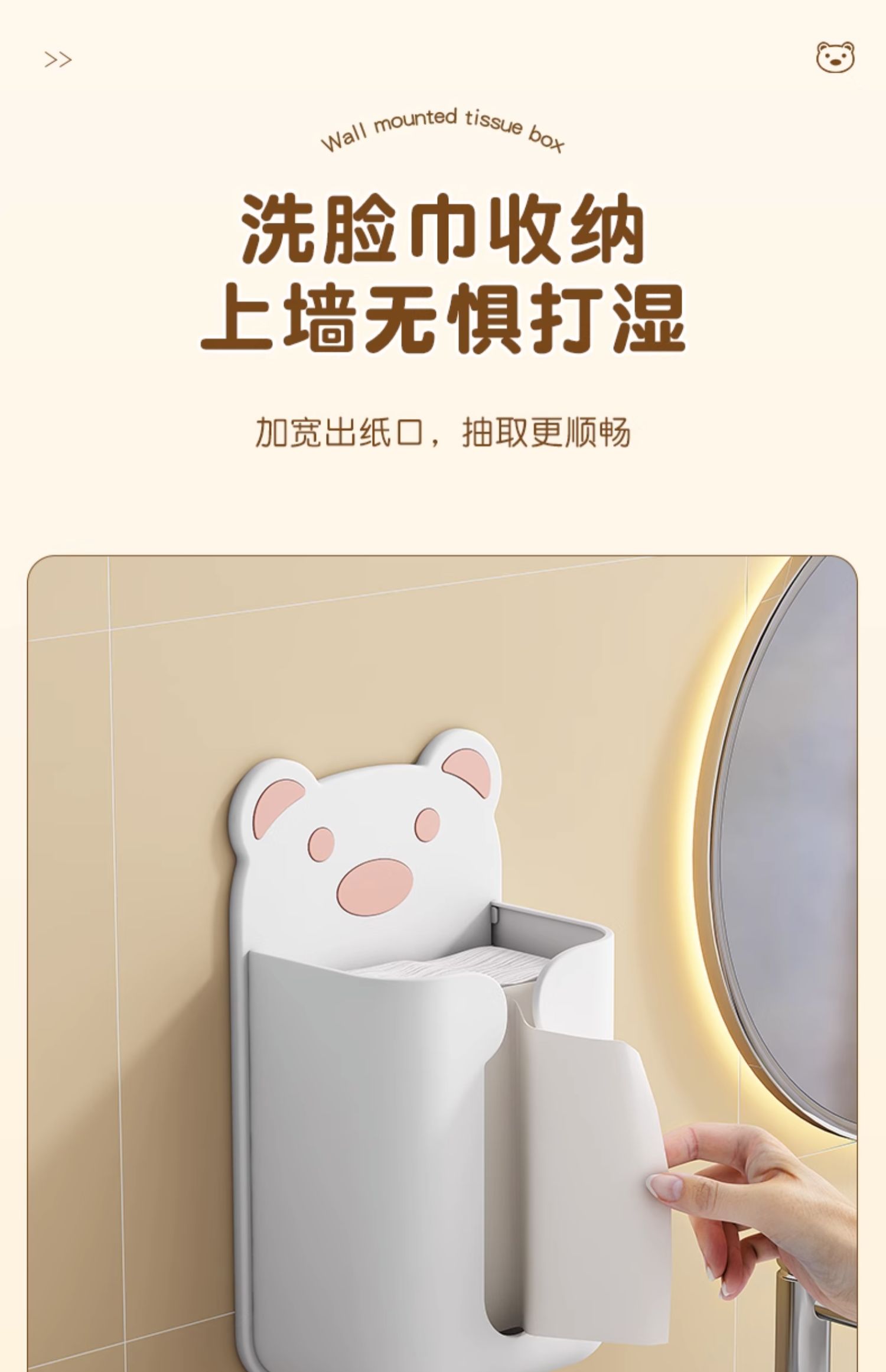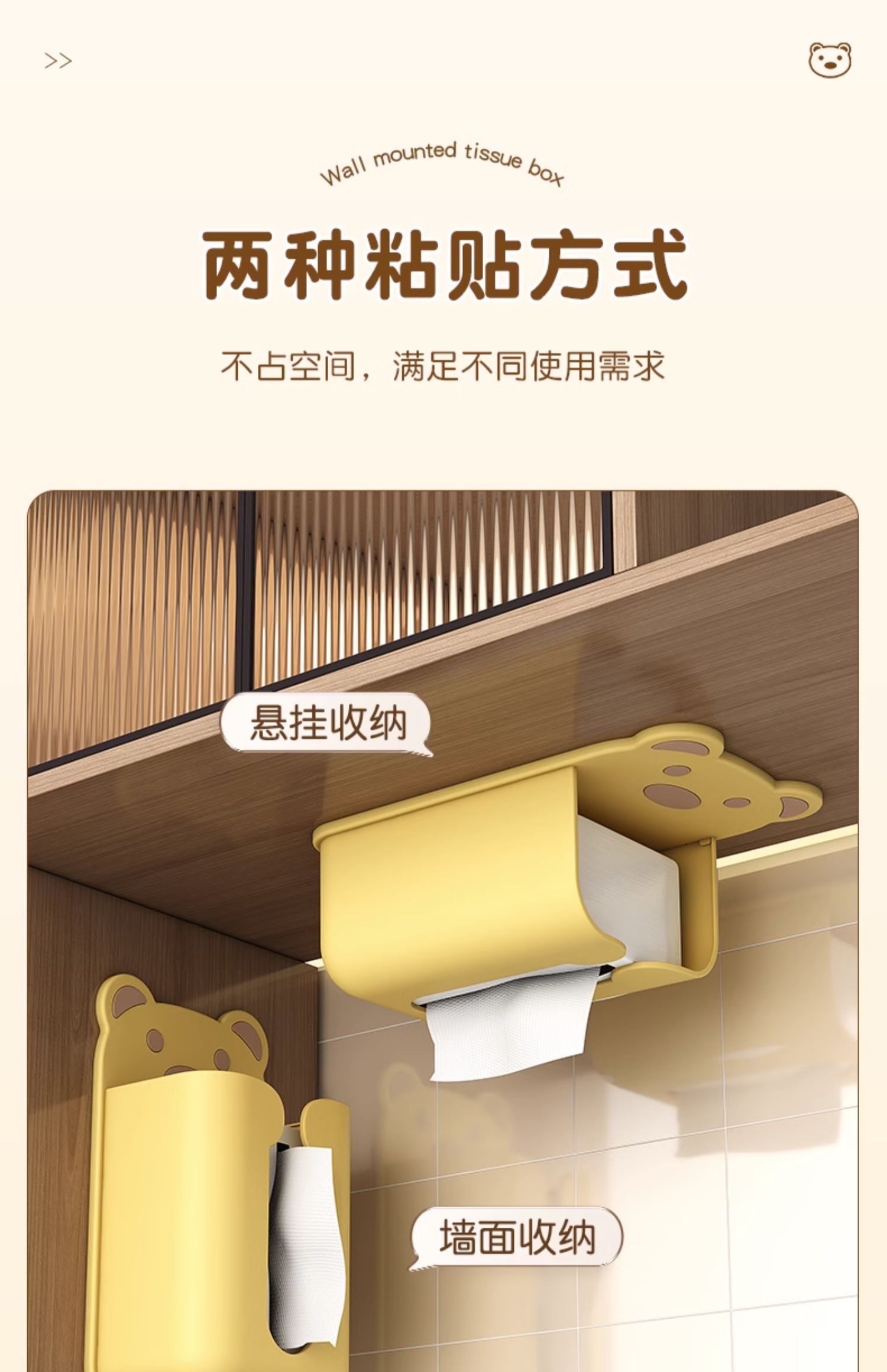 可爱卡通纸巾盒壁挂式免打孔抽纸盒家用客厅卫生间创意收纳纸筒