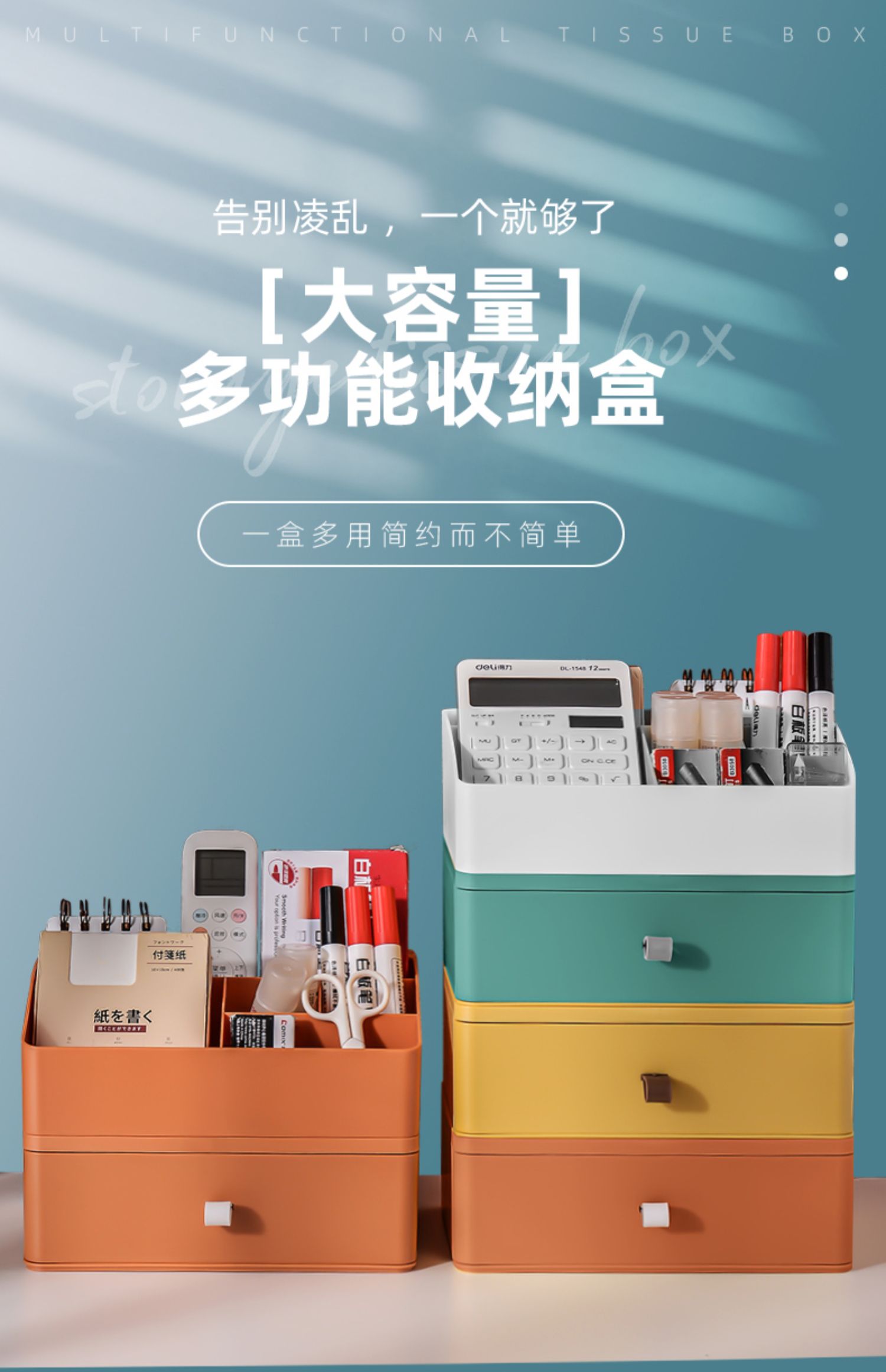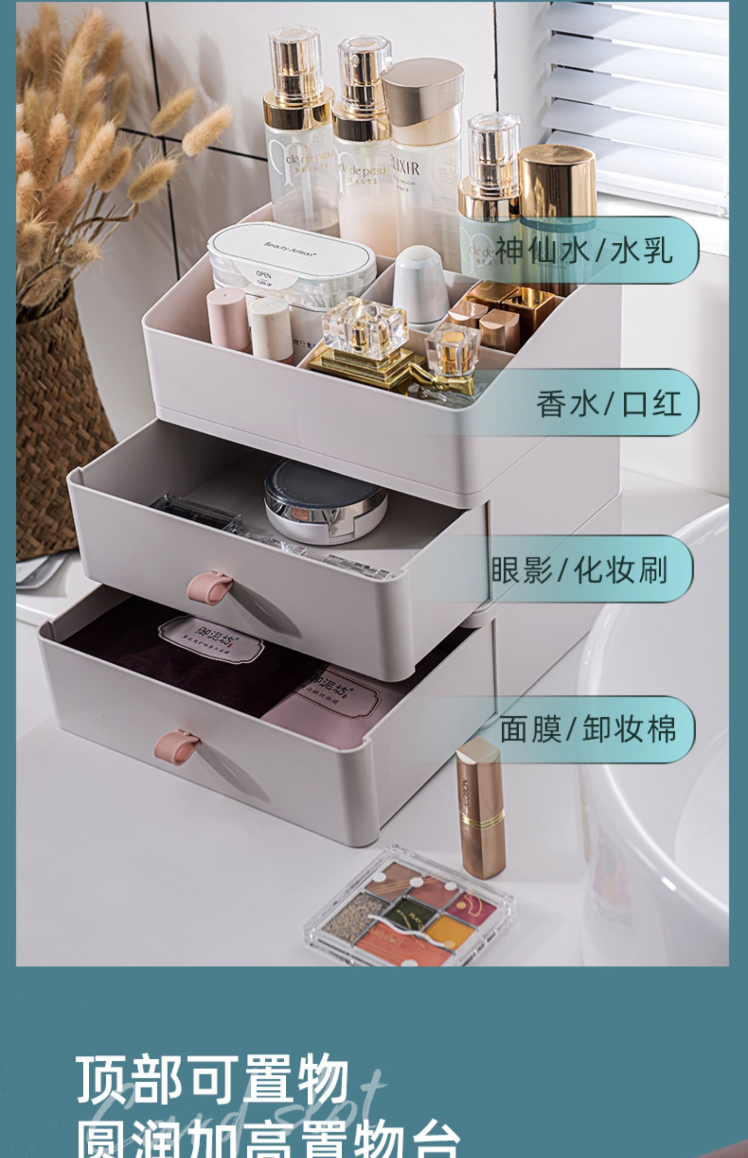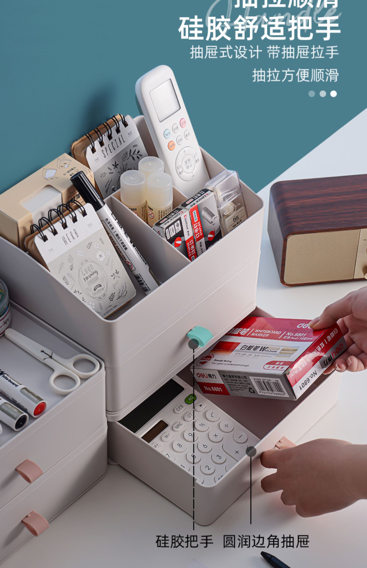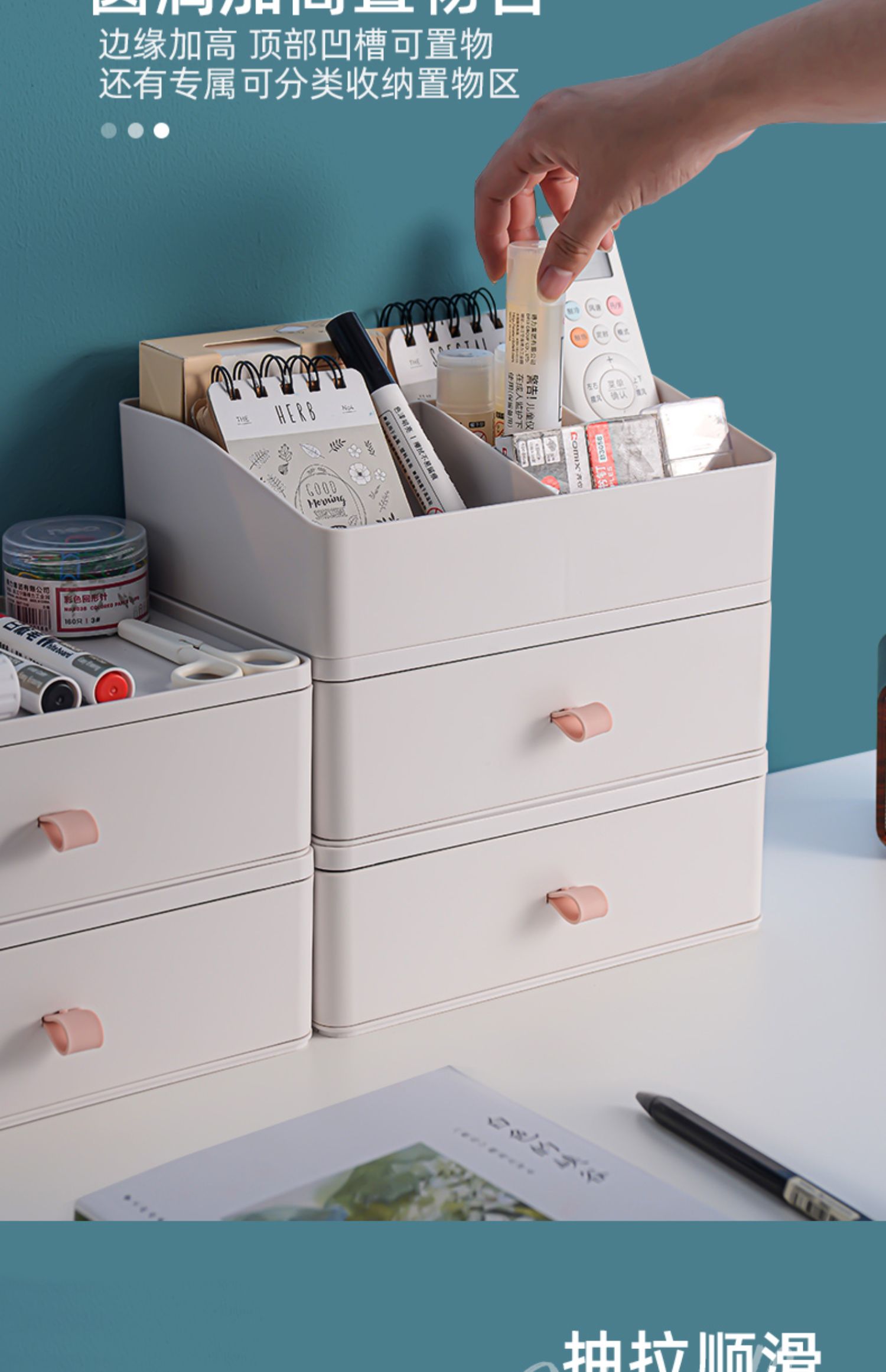 桌面抽屉式办公桌收纳盒办公室化妆品储物柜子书桌上置物架