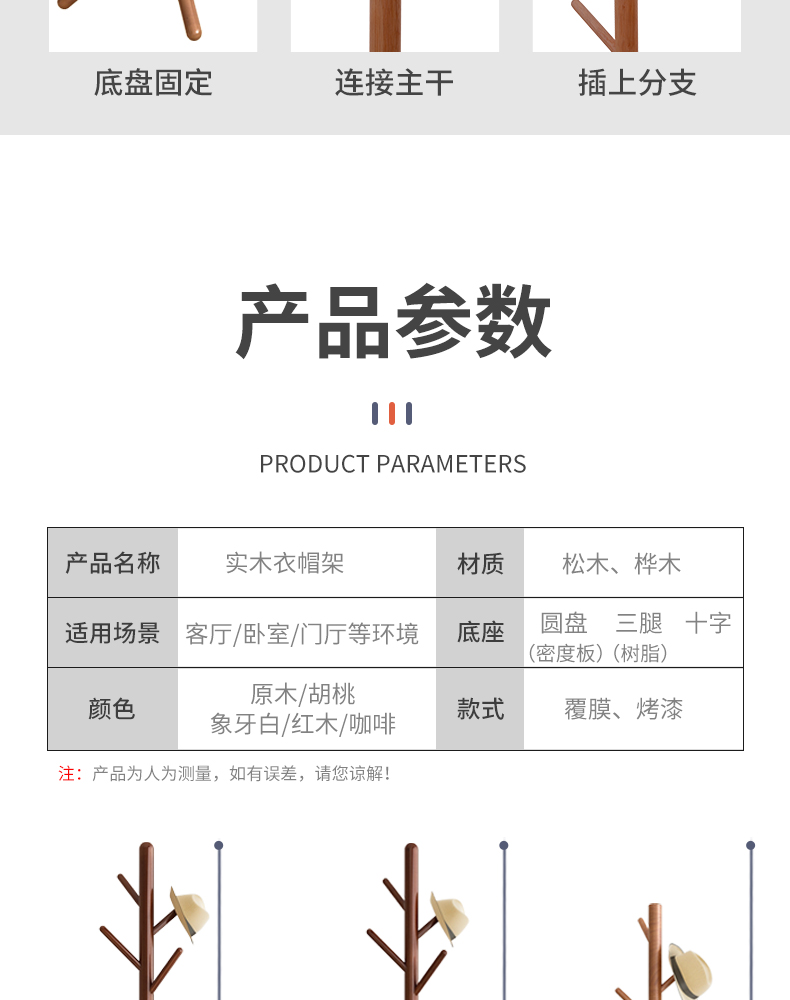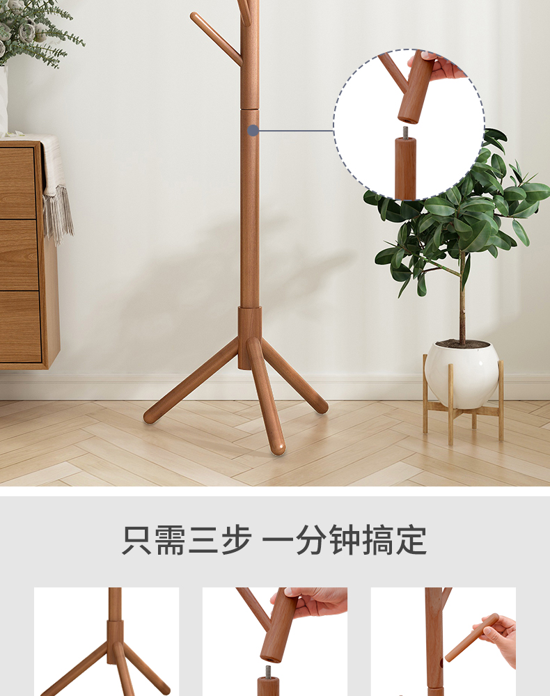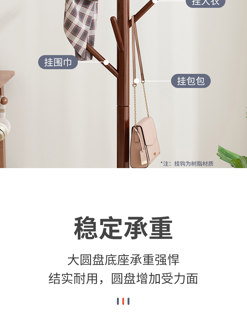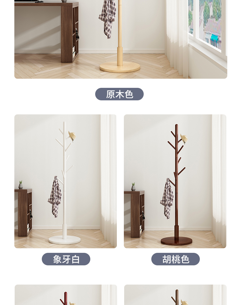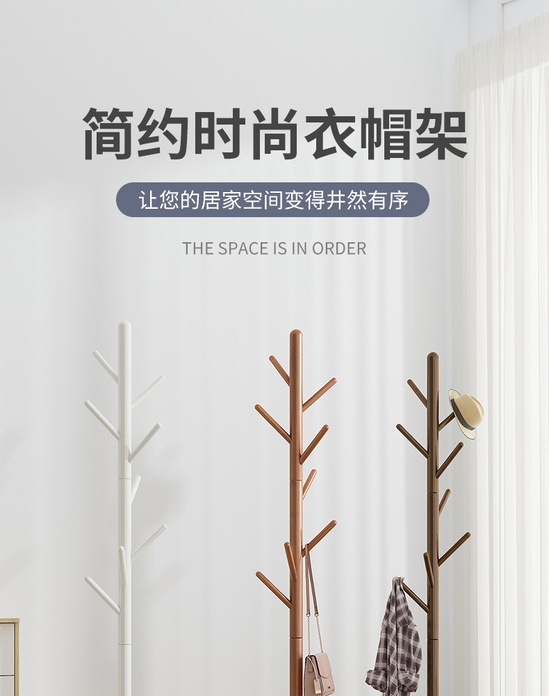 实木衣帽架落地卧室内置物客厅挂衣服架子家用单杆立式简易挂包架
