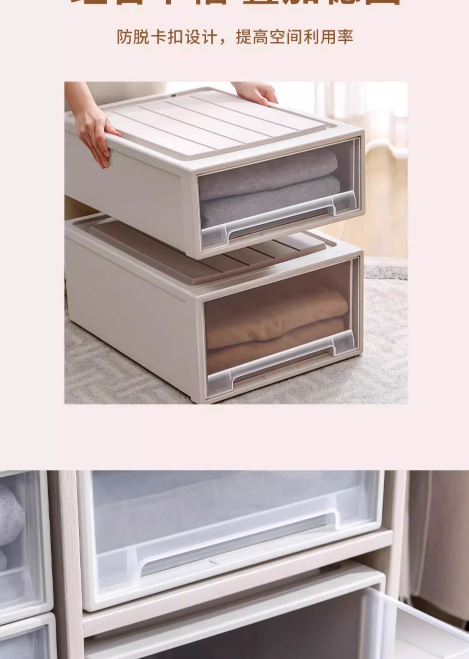 收纳箱抽屉式塑料家用衣服透明衣柜化妆品收纳盒衣物储物箱整理箱