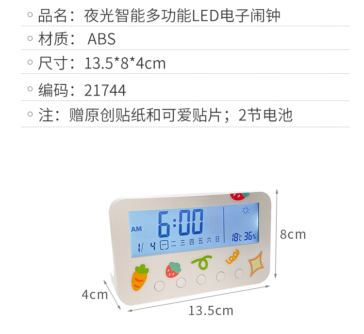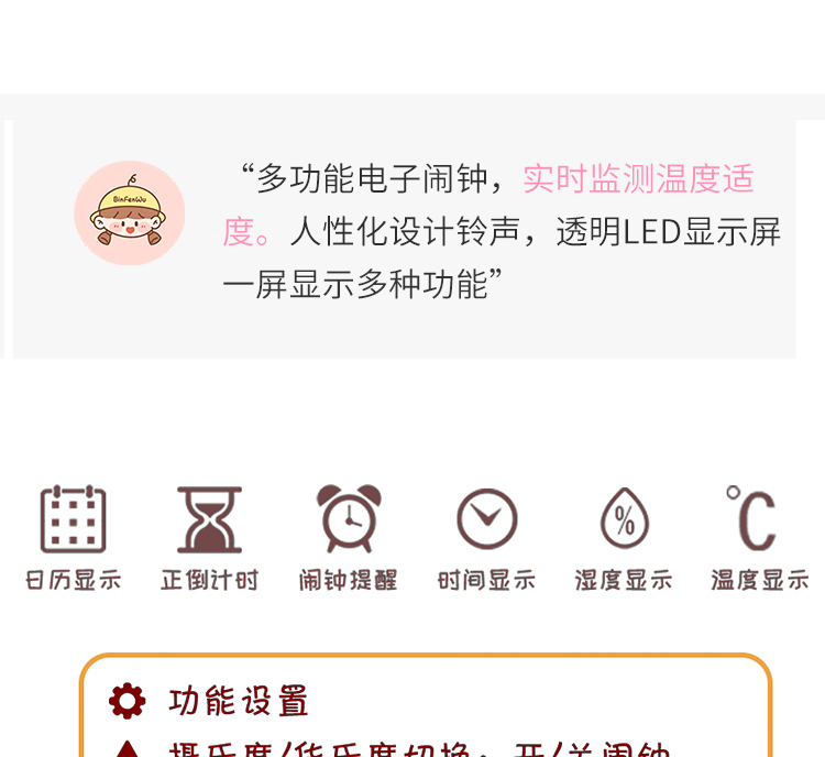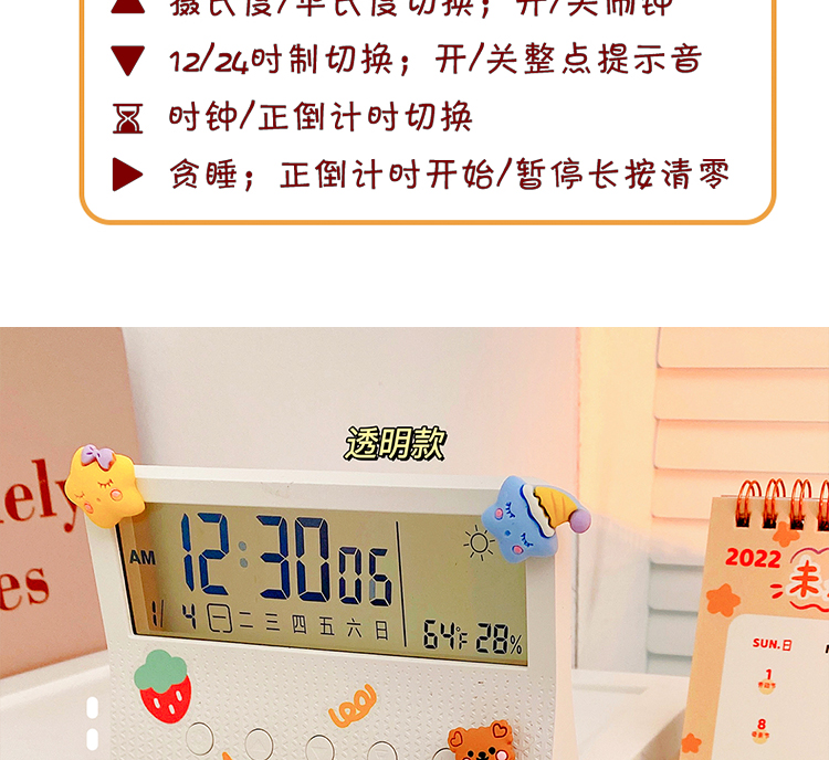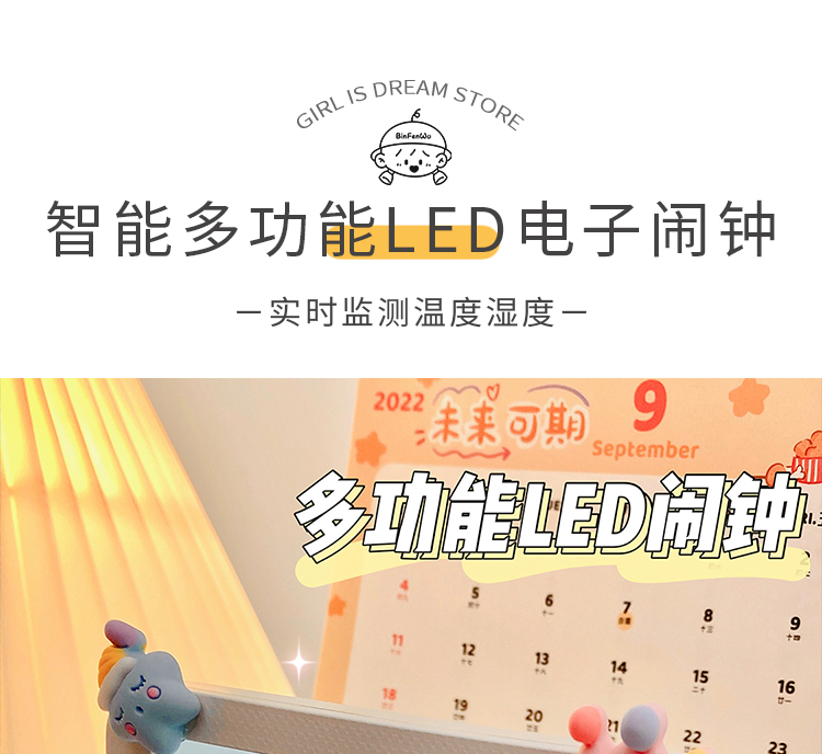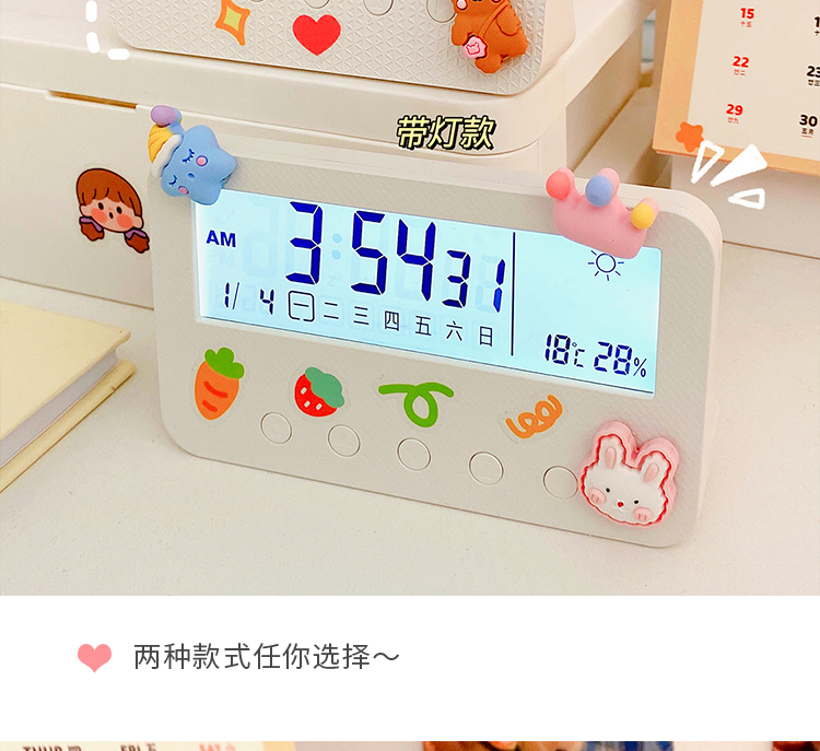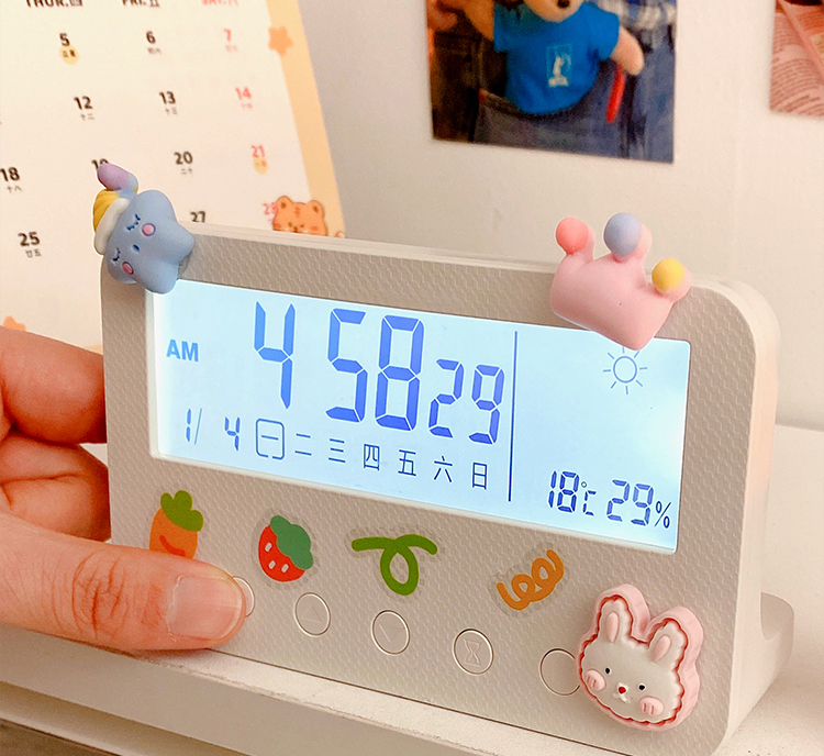 数显多功能闹钟电子创意可爱温湿度计室内婴儿家用智能高精度精准